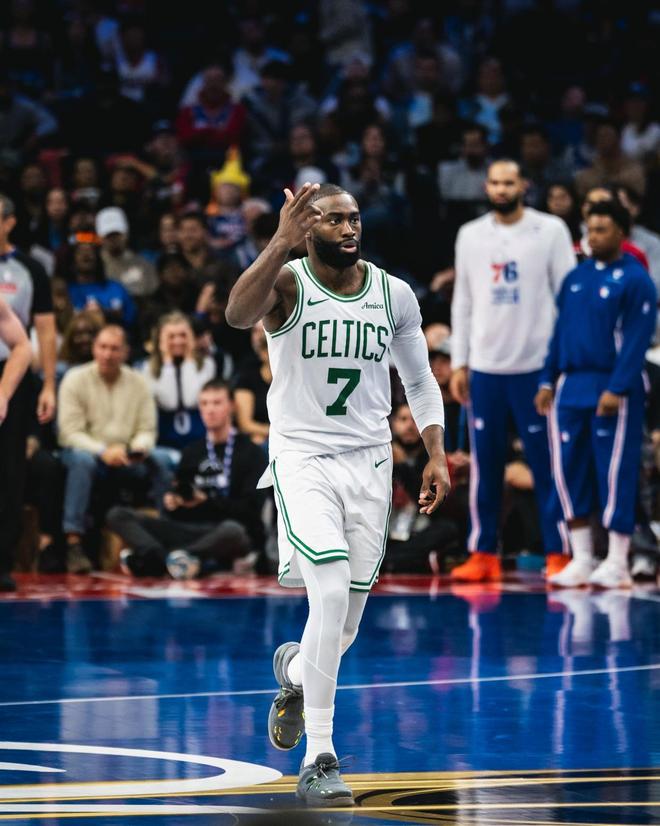凯尔特人队巨星杰伦布朗,在此役表现优秀。布朗上场32分钟,19中13,三分球7中4,罚球3中2,狂轰32分3篮板6助攻1抢断1盖帽的全能数据。布朗以68%的命中率轰下了全场的最高分,还以57%的命中率投进了此战最多的4记3分球。在进攻端火力全开的布朗,早早进入了得分模式。首节砍下了16分的布朗,状态火热,一度帮助凯尔特人取得了24分的领先优势。